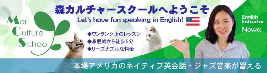 森カルチャースクールでは、アメリカ発音による英会話レッスン・本格的なジャズ(ピアノ・ギター・ボーカル)が学べるアットホームな教室です。大阪-神戸(三宮、芦屋、西宮、伊丹、宝塚、高槻、京都)から通いやすく、JR尼崎から徒歩5分の立地です。プロ中のプロによるマンツーマンで自由の利くワンランク上のレッスンが売りです。2匹の猫がいる猫好きにも好評の猫カフェ感覚の教室です。