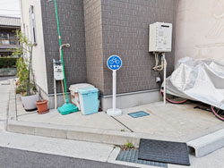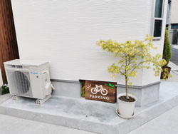 <北側スペース> できるだけ建物に平行になるよう お停めください <南側スペース> 段差の上に乗り上げてお停めください |