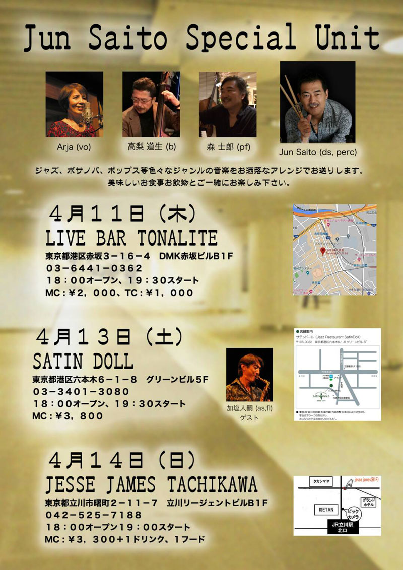 2017年1月28日(土)六本木クラップスにてジャズライブがあります。