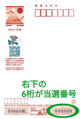森カルからの年賀状(6桁の数字)がそのまま抽選番号になります。