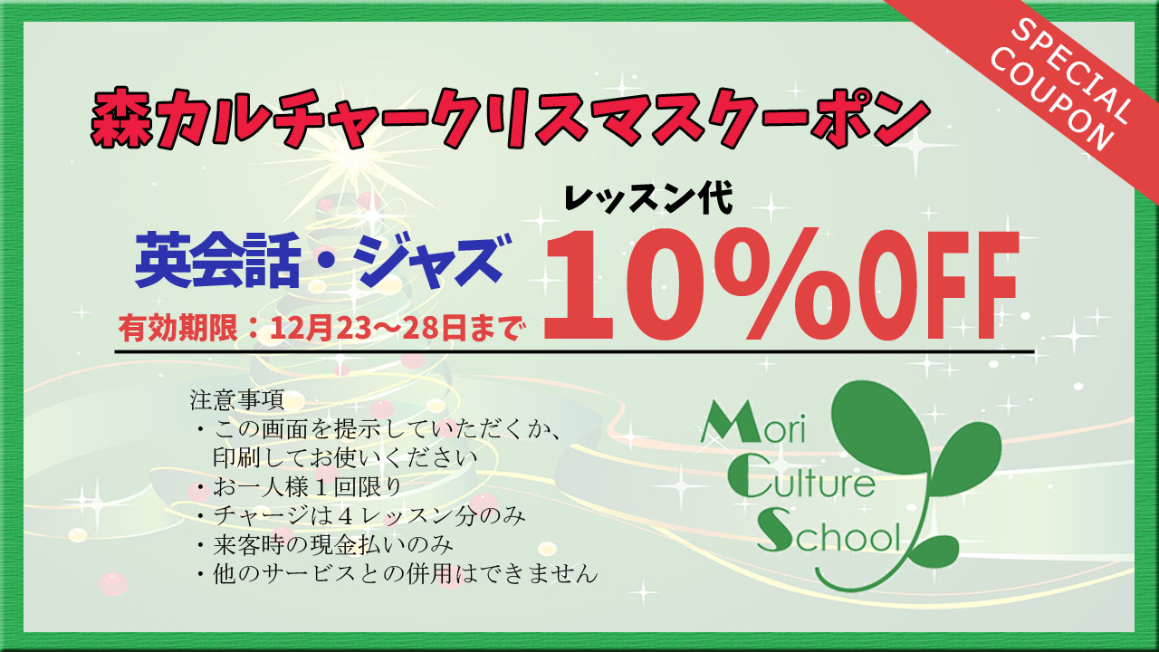 | 12月 | 料金10%オフ ※1 英会話/ジャズ |