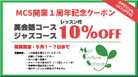 | 5月 | 料金10%オフ ※1 英会話/ジャズ |